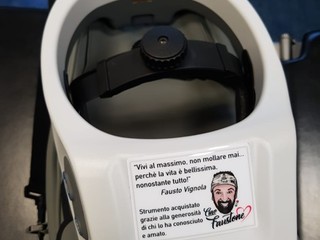 Nella giornata di mercoledì la famiglia, accompagnata da una rappresentanza dei Fieui di Caruggi di Albenga e dal compagno e amico Maurizio Gerini, ha donato all'ospedale Gaslini un defibrillatore e uno speciale visore per i prelievi. Strumenti medici di alto livello che verranno utilizzati da un'équipe specializzata che si occupa delle terapie a domicilio per i giovani pazienti.