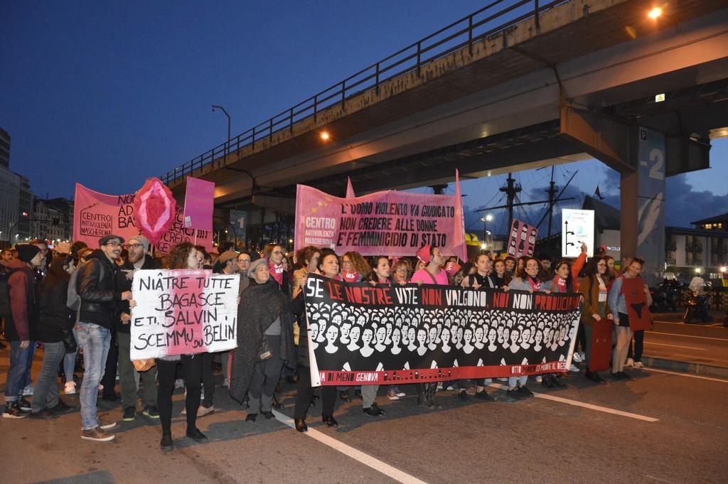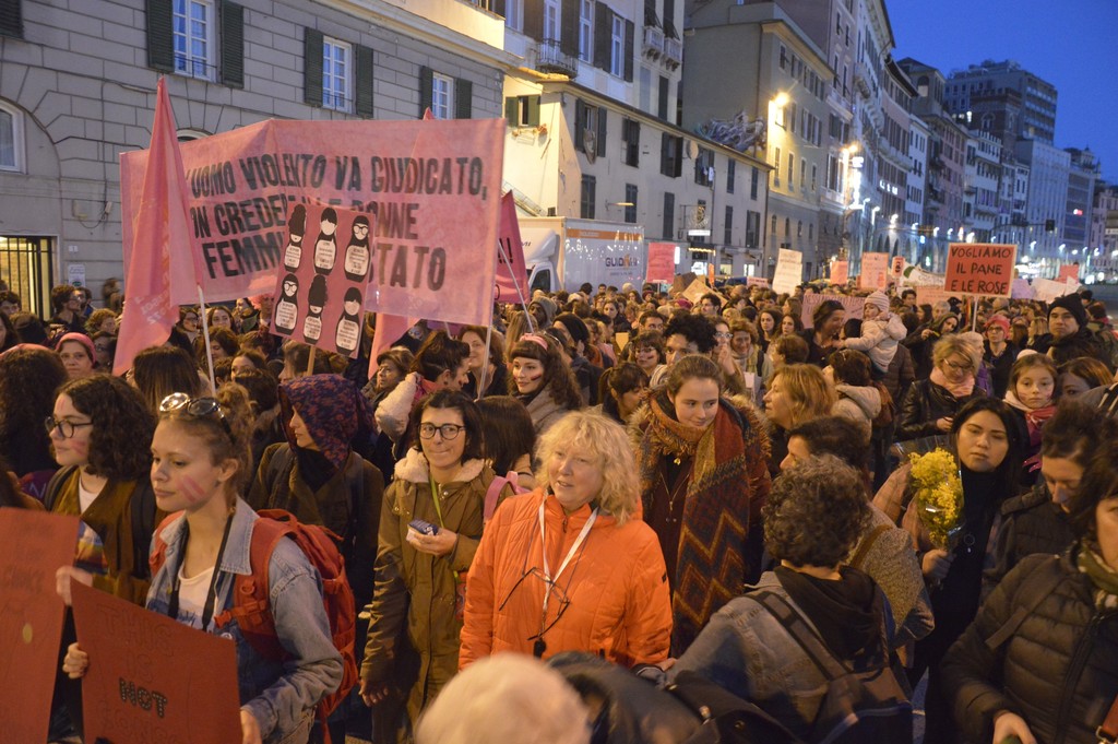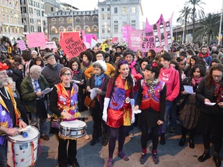 Dopo il concentramento il piazza Caricamento la manifestazione si è diretta verso piazza Matteotti sfilando per le vie del centro, tra slogan, musica e balli.