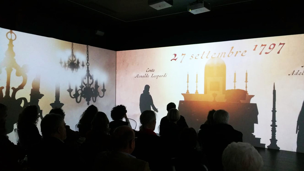 Brand culturale marchigiano più conosciuto al mondo, icona indiscussa della letteratura italiana, Giacomo Leopardi diventa protagonista anche di un percorso multimediale a cura di ETT SpA . E’ stato infatti presentato alla stampa il nuovo allestimento delle antiche scuderie Palazzo Leopardi, un luogo fisico in cui poter conoscere, con l’ausilio di tecnologie di ultima generazione, aspetti inediti del poeta recanatese. L’installazione è stata pensata come un ambiente immersivo che rimanda alla vita e alla casa di Giacomo grazie a una base scenografica caratterizzata da un continuo modificarsi dell’ambiente attraverso immagini e proiezioni in videomapping. Non un semplice filmato ma una visita virtuale agli ambienti di Casa Leopardi per conoscere gli spazi e i personaggi che hanno formato e ispirato i versi del celebre poeta. L’allestimento multimediale è stato realizzato attraverso un sistema di videoproiezione avvolgente di 12 metri circa sviluppato su tre pareti e con l’ausilio di 6 videoproiettori per restituire al visitatore una ricostruzione fedele di Casa Leopardi e, soprattutto, immergerlo nella sua storia, dall’infanzia, allo studio matto e disperatissimo, alle sue notti insonni fino al suo celeberrimo infinito.