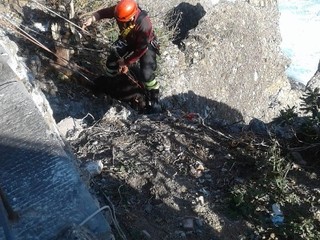 L'animale era caduto dalla scogliera, nei pressi della Chiesa di San Giorgio, restando bloccato tra le rocce scoscese