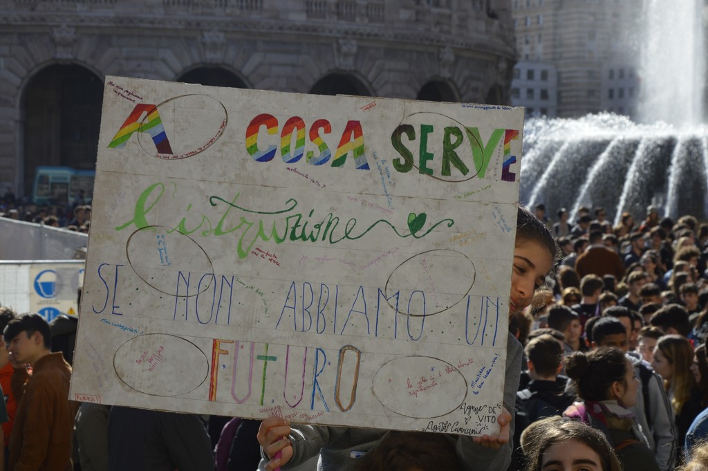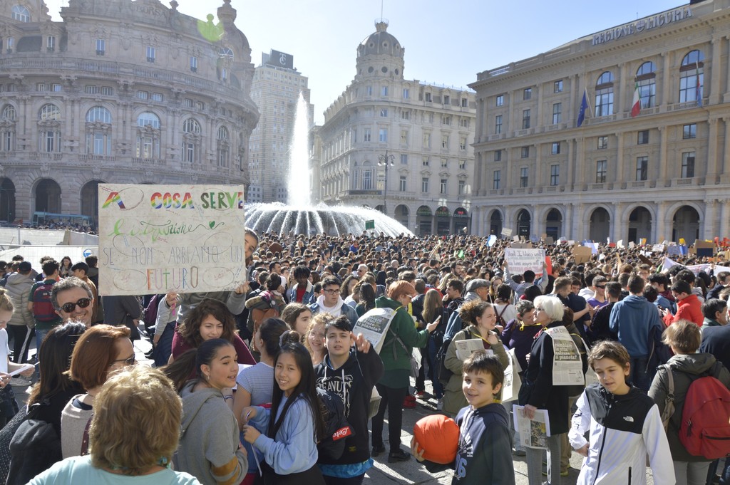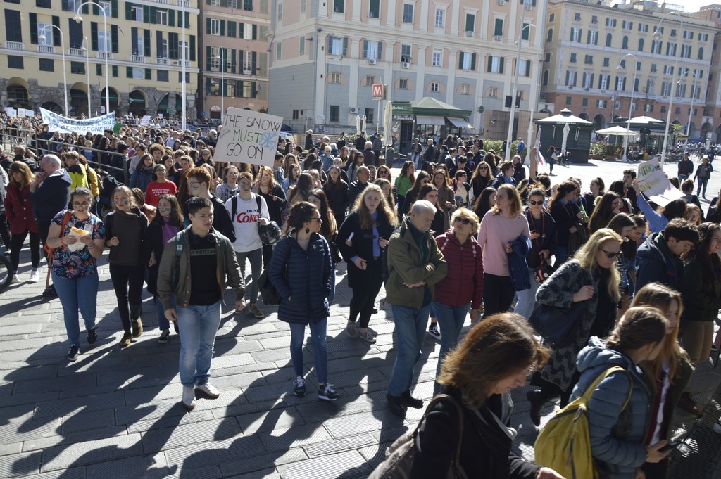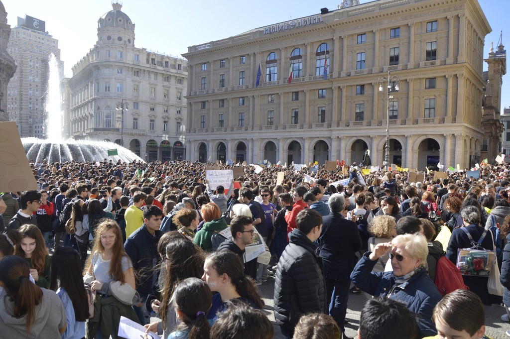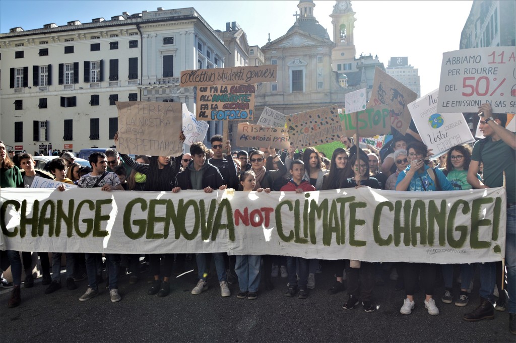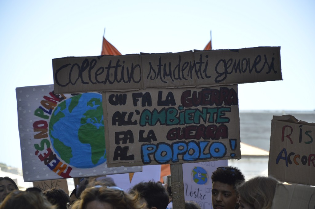 Non è bastata piazza De Ferrari a raccogliere le migliaia di manifestanti che oggi hanno sfilato fino al Porto Antico per segnalare la necesità urgente che politica ed economia cambino per salvaguardare l'ecosistema del pianeta: "Siamo la prima generazione che avverte i cambiamenti climatici e l'ultima che può farci qualcosa", si legge su uno dei tanti cartelli esposti durante la manifestazione da un giovane.