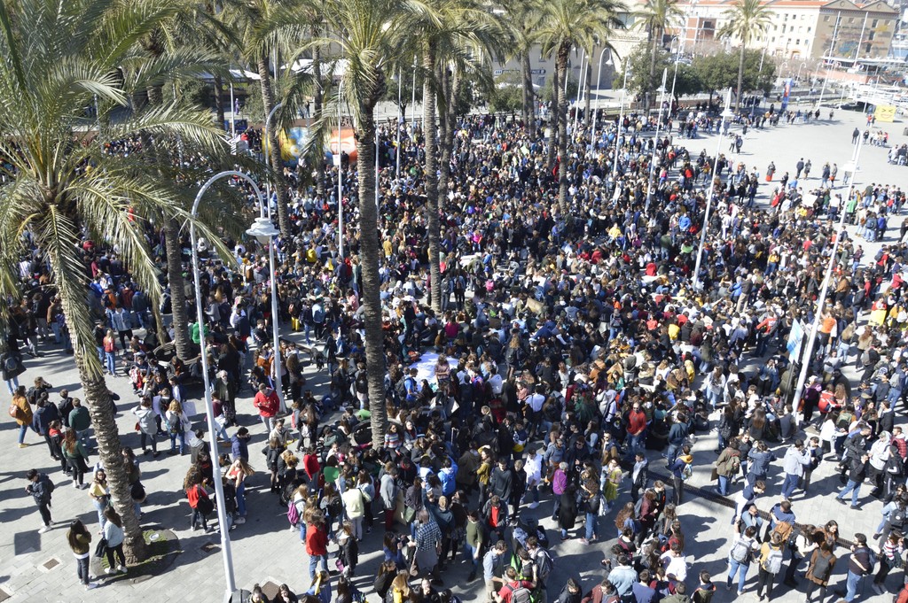Dopo il concentramento in De Ferrari, il corteo è sfilato lungo via San Lorenzo e attraverso il Porto Antico, fino ad arrivare al piazzale Mandraccio. Qui un rapido flash mob, che ha avuto qualche intoppo, visto l'altissimo numero di persone in piazza, oggettivamente quasi impossibile da coordinaresoltanto con l'aiuto di qualche megafono. Infine la lettura di una lettera di Greta, la sedicenne svedese che ha dato il via con la sua attività al movimento Friday's for Future: "Avremmo voluto chiedervi di sdraiarvi tutti per simulare il futuro prossimo quando parte dell'umanità morirà se non torniamo indietro - spiega al megafono una delle organizzatrici - ma siete talmente tanti che non è possibile".