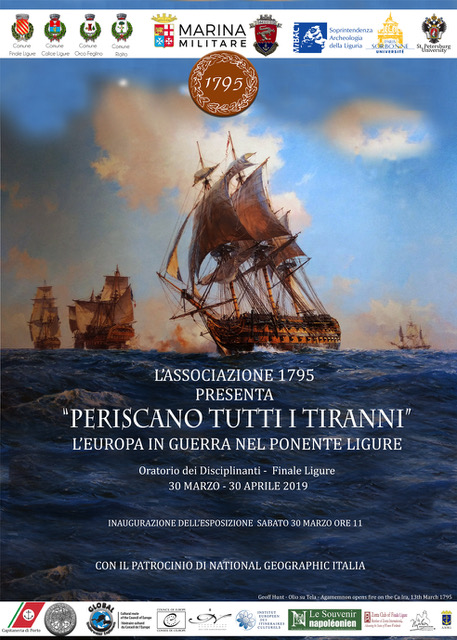 Una mostra che già salta agli occhi per la bellezza del manifesto: come immagine è stato infatti concesso dall’autore un olio su tela di Geoff Hunt, il pittore ufficiale della Royal Navy, nonché uno dei più quotati “pittori di scontri navali” al mondo. L’immagine raffigura l’attacco al Vascello Francese Ca Ira ad opera dell’Amemnon di Nelson, al largo delle acque finalesi il 13 marzo del 1795.