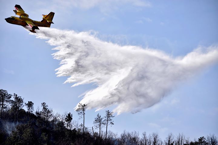 Al momento sul luogo è attivo un canadair. A terra sono presenti 4 squadre di Volontari antincendio boschivo e 10 vigili del fuoco