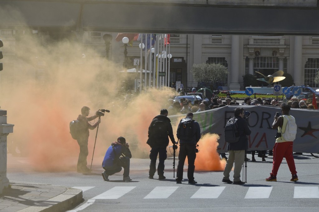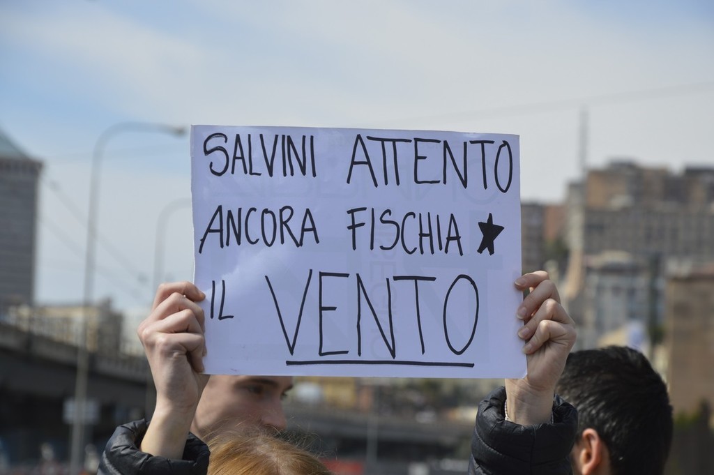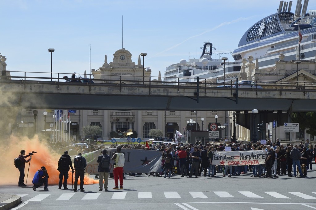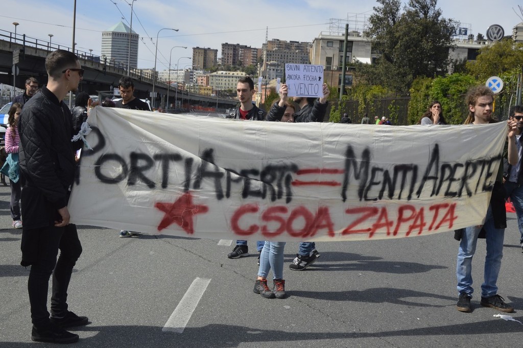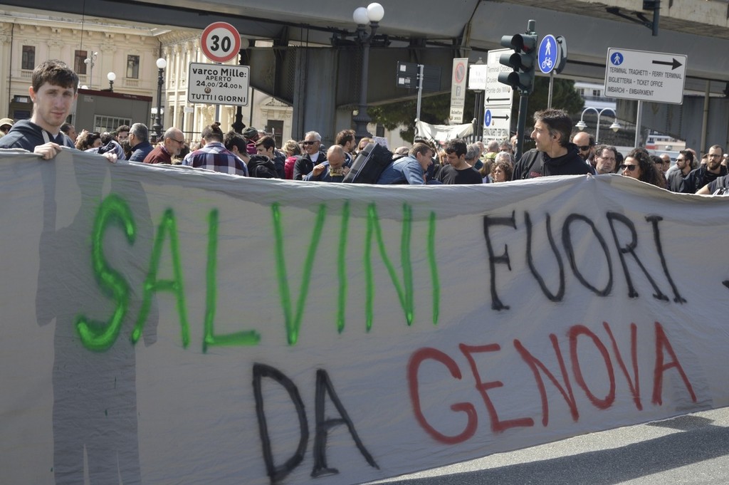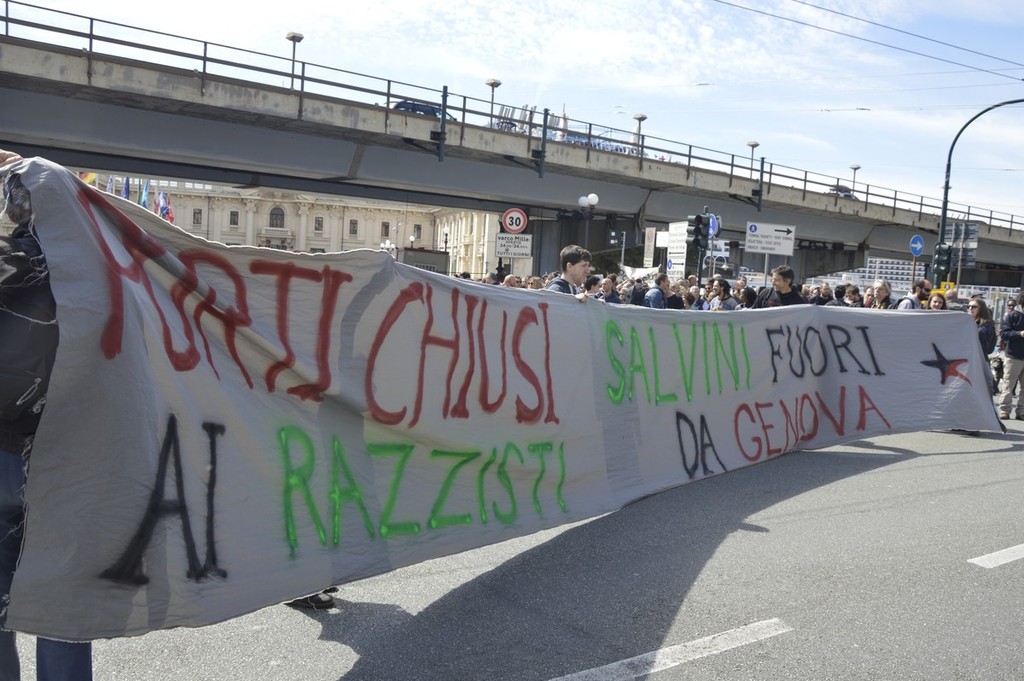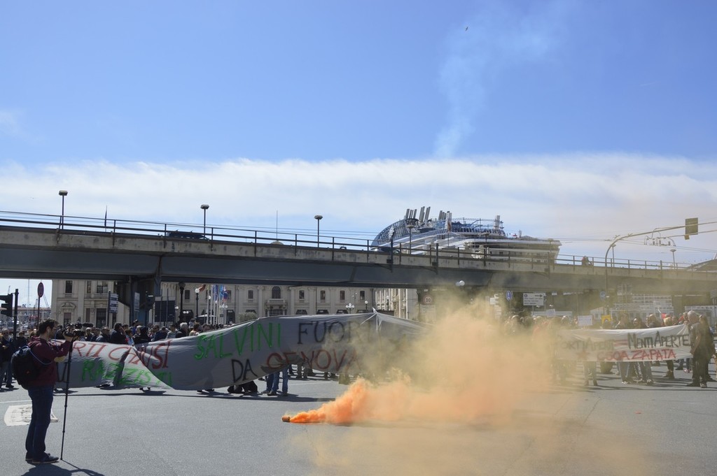 Circa 300 manifestanti hanno dato vita alla protesta contro l'arrivo del ministro leghista: “Porti chiusi a Salvini, fuori i razzisti da Genova”, si legge su uno degli striscioni esposti