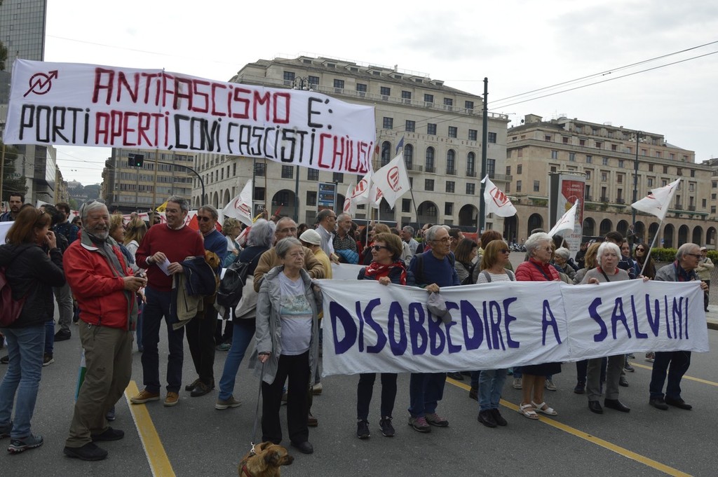 Corteo molto partecipato per il 25 Aprile quest'anno, forse anche grazie alle polemiche su Liberazione e Resistenza che hanno caratterizzato recentemente il dibattito politico; in corteo striscioni contro Salvini e il governo