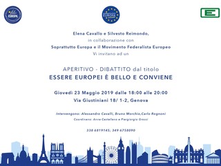 "Essere Europei è belle e conviene", questo il titolo dell'aperitivo dibattito organizzato da Elena Cavallo e Silvestro Raimondo in collaborazione con Soprattutto Europa e il Movimento Federalista Europeo.