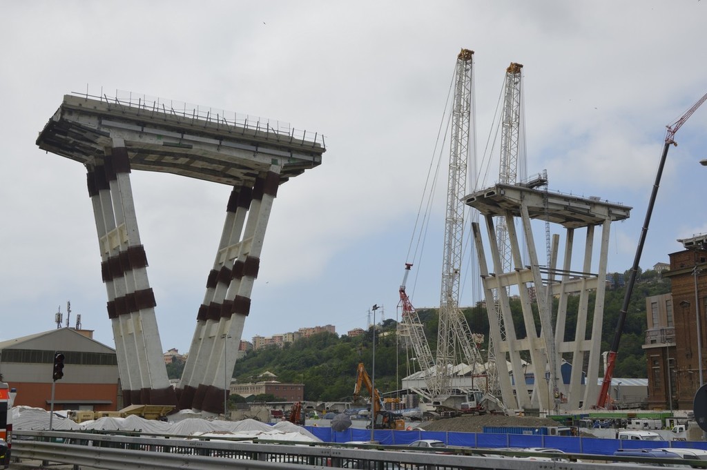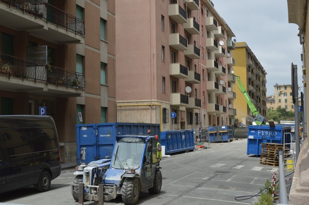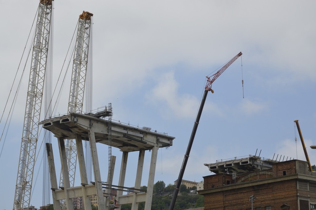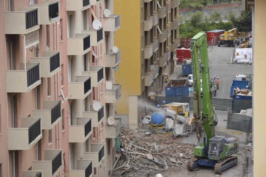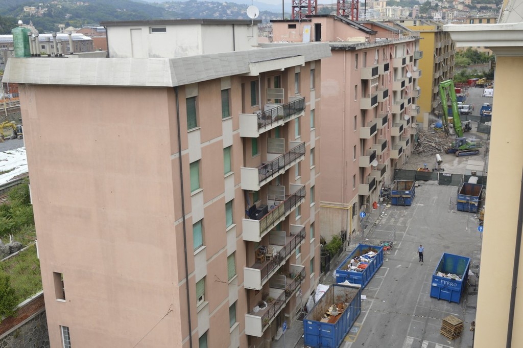 Ponte Morandi, procedono i lavori di demolizione in via Porro (VIDEO e FOTO)