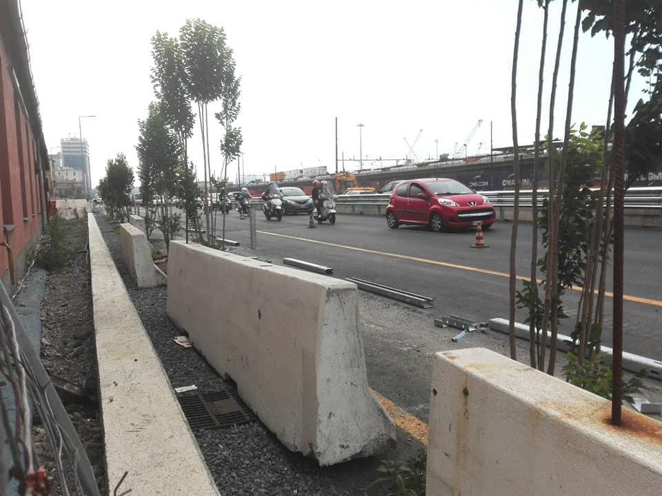Silvia Giardella, la presidente di questo coraggioso e combattivo gruppo di persone, aggiunge: “Grazie a chi ha progettato, permesso, autorizzato e realizzato tutto questo. Avevamo chiesto la semplice traslazione della settima corsia, quella ciclabile, lato mare, sul lato delle abitazioni, per darci un po’ di respiro e allontanare la lingua infuocata di asfalto. Lo avevamo chiesto quando ancora i capannoni era appena stati abbattuti, e con un intervento serio si sarebbe potuta fare una modifica. La Conferenza dei servizi di luglio 2018 invece ha modificato solo un tratto di duecento metri, in barba alle centinaia di famiglie che soffocano dallo smog, dal rumore e dal caldo. Sarebbe bastato quell’accorgimento, una corsia tutta alberata e la galleria fonoassorbente per ridare dignità e vivibilità a un quartiere in ginocchio. Ogni volta che mi affaccio viene il magone e lo sconforto, siamo stati ignorati e completamente messi all’angolo, come se non fossimo cittadini di Genova. Ci ammaleremo nell’indifferenza di tutti”.