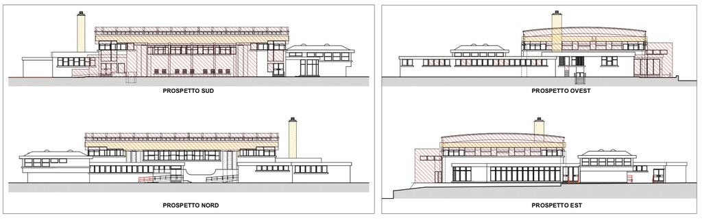 Inoltre, “sullo spazio liberato dalla vasca e dalle gradinate demolite sarà realizzato il nuovo solaio del campo da gioco, pavimentato con i materiali tecnici omologati per la pallacanestro, la pallavolo e il calcio indoor a 5. Gli spazi per il pubblico saranno realizzati all’interno del nuovo volume esterno previsto sul prospetto sud con struttura portante in cemento armato e copertura sostenuta da travetti in legno lamellare con manto analogo a quello dell’area di gioco, con finitura esterna in lamiera grecata. Qui saranno realizzati gli spalti per il pubblico e i nuovi servizi igienici. Le superfici sottostanti saranno destinate a ospitare elementi degli impianti tecnologici. Agli spalti si accederà dal nuovo atrio di ingresso per gli spettatori, edificato in prossimità del cancello carrabile lato sud-ovest, che permetterà di raggiungere sia il locale bar sia gli uffici delle società sportive insediate. L’ala nord ovest dell’impianto sarà destinata ai locali accessori del campo principale con la realizzazione degli spogliatoi per gli atleti, per i giudici e per gli istruttori, delle superfici di deposito e del locale di primo soccorso. L’ala nord est, invece, è stata ipotizzata come impianto sportivo separato, con una propria area per l’attività sportiva (ginnastica, fitness ecc.), propri spogliatoi per atleti e addetti con sala medica, uffici e locali di deposito indipendenti”.