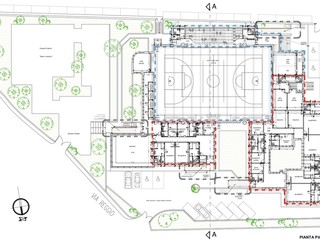 Inoltre, “sullo spazio liberato dalla vasca e dalle gradinate demolite sarà realizzato il nuovo solaio del campo da gioco, pavimentato con i materiali tecnici omologati per la pallacanestro, la pallavolo e il calcio indoor a 5. Gli spazi per il pubblico saranno realizzati all’interno del nuovo volume esterno previsto sul prospetto sud con struttura portante in cemento armato e copertura sostenuta da travetti in legno lamellare con manto analogo a quello dell’area di gioco, con finitura esterna in lamiera grecata. Qui saranno realizzati gli spalti per il pubblico e i nuovi servizi igienici. Le superfici sottostanti saranno destinate a ospitare elementi degli impianti tecnologici. Agli spalti si accederà dal nuovo atrio di ingresso per gli spettatori, edificato in prossimità del cancello carrabile lato sud-ovest, che permetterà di raggiungere sia il locale bar sia gli uffici delle società sportive insediate. L’ala nord ovest dell’impianto sarà destinata ai locali accessori del campo principale con la realizzazione degli spogliatoi per gli atleti, per i giudici e per gli istruttori, delle superfici di deposito e del locale di primo soccorso. L’ala nord est, invece, è stata ipotizzata come impianto sportivo separato, con una propria area per l’attività sportiva (ginnastica, fitness ecc.), propri spogliatoi per atleti e addetti con sala medica, uffici e locali di deposito indipendenti”.