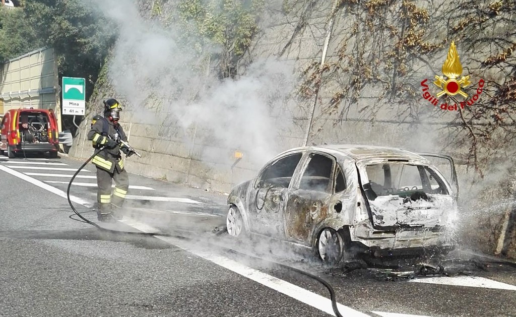 Incidente sulla A10: auto in fiamme, intervento dei pompieri