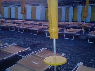 Le cabine bianche e gialle sono nuovamente sistemate. I supporti degli ombrelloni sono allineati sulla spiaggia, i primi lettini e le sdraio tornano a comparire. Nei prossimi giorni saranno riattivati i servizi igienici e le docce.