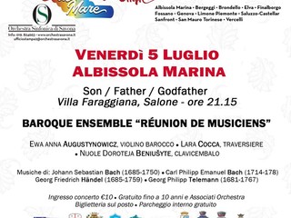 Dopo il successo di “Tesori musicali del XVIII secolo” con Voxonus Ensemble e Ensemble Accademia del Ricercare, la musica barocca ritorna protagonista assoluta nel Salone di Villa Faraggiana venerdì 5 luglio alle 21.15 con il raffinato concerto “Son/Father/Godfather” eseguito dal Baroque Ensemble “Réunion de Musiciens”.