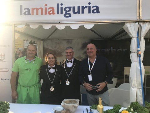 L’assessore regionale al Turismo Giovanni Berrino, questa sera, ha partecipato a una speciale dimostrazione culinaria presso lo stand #lamialiguria, allestito nel centro del paese da Agenzia in Liguria, a base di pesto fresco e focacce genovesi. Con lui, anche il neoeletto presidente della Regione Piemonte Alberto Cirio.