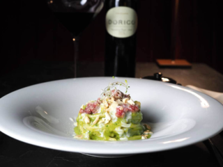 La regola del tre è alla base della carta: tre proposte per ogni portata e la garanzia di freschezza del prodotto. La zucchina tonnata in amuse-bouche, croccante come si deve, è delicata e dà il la a un percorso che in musica verrebbe definito “sussurrato” tanto interpretato con moderato rigore, senza inutili eccessi e materie prime giustamente abbinate e cucinate. Dopo il convincente sgombro, asparagi e maionese di capperi, i primi seducono e meritano il plauso: riso, cannolicchi, burrata e mirtilli e spaghetti alla chitarra, fave, taralli e pecorino con la salsiccia di Bra che stacca e delizia. I secondi saranno oggetto di una prossima visita. In chiusura squisite rivisitazioni, senza estremismi, del tiramisù e della piemontesissima pesca con gli amaretti.