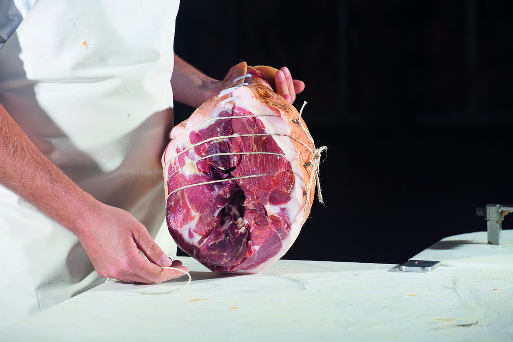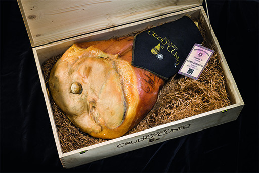 Gli ingredienti del Crudo di Cuneo sono solo due: la carne di suino, che deve essere di ottima scelta, e il sale integrale dolce di Cervia, che mantiene la sua naturale umidità e non conferisce alcun retrogusto amaro alla carne. Ma anche l’aria, nonostante non si trovi in etichetta, è un elemento particolarmente importante. Il Monviso e le montagne circostanti proteggono questa zona del Piemonte dalle correnti d’aria fredda, trattenendo invece quelle d’aria tiepida provenienti dalla Liguria, creando un microclima perfetto che accudisce il prosciutto per l’intero arco dei 24 lunghi mesi di stagionatura.