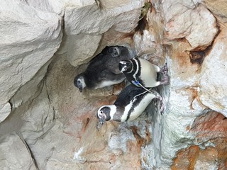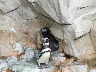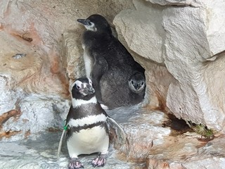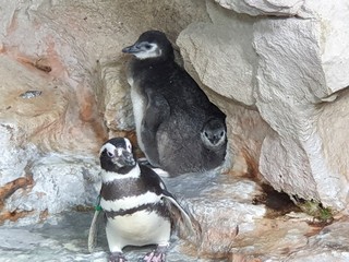 La vasca dei pinguini dell’Acquario di Genova ospita 22 esemplari di due specie diverse: Magellano (10+ 3 pulcini) e Papua (12). Il lato terrestre riproduce i due habitat delle specie ospitate ricreando le condizioni ideali per la riproduzione e l’allevamento dei cuccioli. I piccoli hanno iniziato ad uscire dai nidi e sono riconoscibili per il sottile piumaggio grigio di questa prima fase di vita.