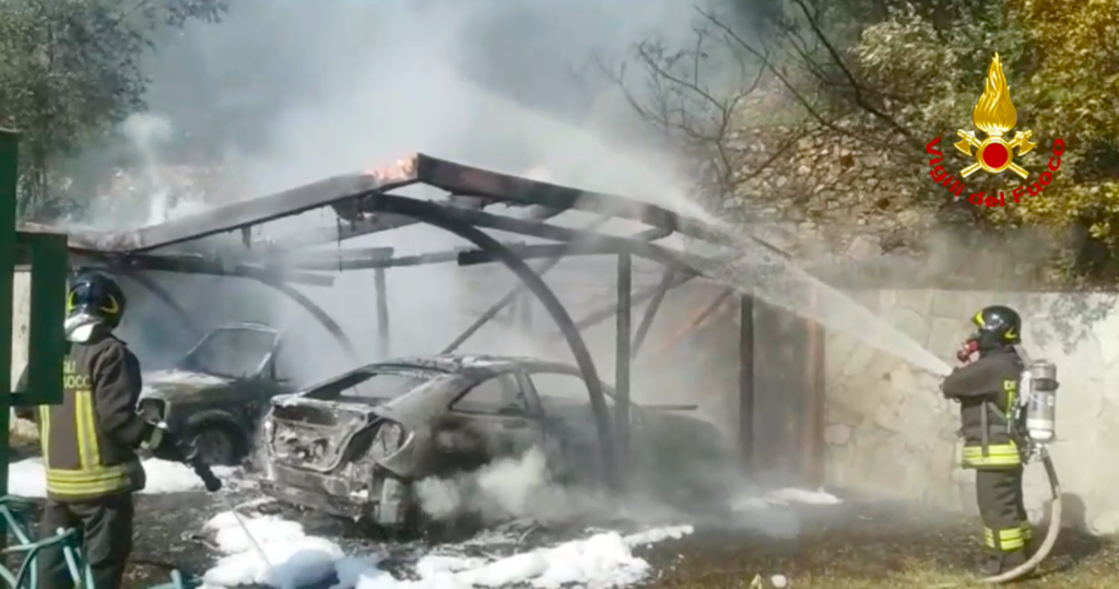 Le fiamme hanno coinvolto anche il pergolato sotto il quale erano parcheggiate