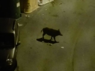 Stamattina alle 2 in Corso Martinetti, nel quartiere di Sampierdarena, all'altezza del supermercato, si aggira un gruppetto di dei cinghiali in cerca di cibo.