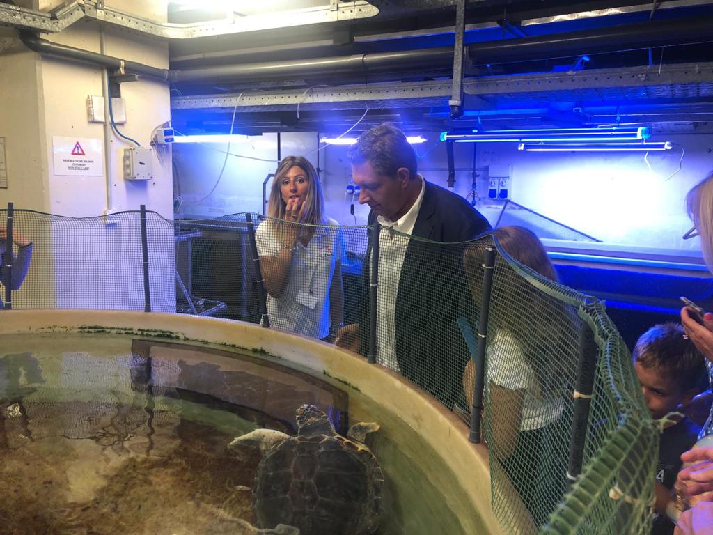 Il presidente di Regione Liguria Giovanni Toti ha visitato l’Acquario di Genova. Il governatore si è soffermato di fronte alla neonata cucciola di lamantino, alla vasca del polpo gigante, che è l’ultima attrazione varata dall’Acquario, e alla vasca dei delfini. In particolare la visita si è estesa alla vasca di riproduzione delle meduse e a quella dove vengono curate la tartarughe Caretta caretta malate o ferite, recuperate dalla Capitaneria di porto e affidate al personale veterinario dell’Acquario prima di essere reimmesse in mare.