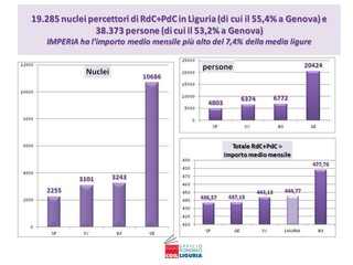 Sono 20.424 persone per un importo medio mensile percepito di 437.13 euro la maggior parte dei liguri che soggiorna in provincia di Genova e che beneficiano del redditto di cittadinanza oppure della pensione di cittadinanza. Dietro al capoluogo ligure si piazza Imperia: nella provincia ci sono 6.772 individui interessati per un importo medio mensile che arriva a 477,73 euro (il più alto di tutta la Liguria).