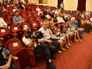 E' stata inaugurata oggi pomeriggio, al Teatro dell'Opera e nel Foyer del Casinò di Sanremo, la mostra di Angela Perri 'La musica che gira intorno', che proseguirà fino al 22 settembre.