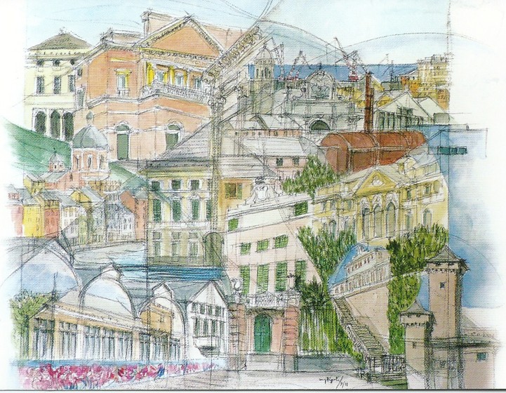 Al Liceo Barabino di quell’epoca s’insegnava in primo luogo e principalmente il disegno, in tutte le sue tecniche materiali ed espressive. Maria Giovanna Figoli ha appreso con padronanza, favorita da una propensione in tal senso, l’uso della tecnica del disegno e soprattutto le sue potenzialità espressive, conoscenza che ha perfezionato negli anni in cui, allora studentessa, al Politecnico il disegno era materia fondamentale per la formazione di un architetto.