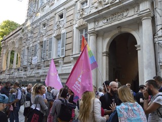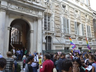 Un presidio colorato e un'iniziativa goliardica hanno aperto il presidio di fronte a Palazzo Tursi, indetto dal collettivo Non Una di Meno per protestare contro la vicenda del patrocinio del Comune all'iniziativa "Aperitivo con lo stalker": le locandine della manifestazione mostravano il logo istituzionale ma l'amministrazione ha negato con forza di averne mai concesso l'uso.