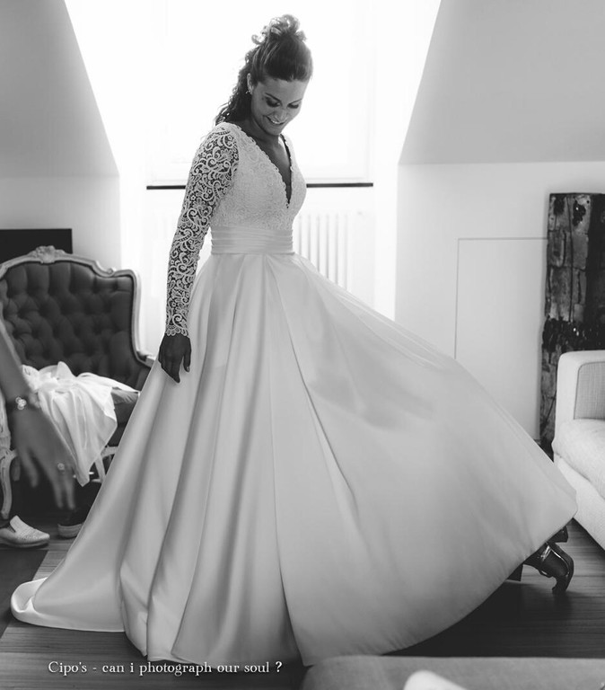 Ci spiega Nicoletta Santullo: “In realtà, poiché la Liguria gode di un clima mite e piacevole tutto l’anno, da noi l’autunno non è necessariamente sentito più di altre stagioni dell’anno come periodo di matrimoni. E anche in termini di abiti da sposa le variazioni sono minime: rispetto alla primavera/estate si tende in autunno a privilegiare colori lievemente più caldi, come una punta di avorio leggermente più scura o una tinta pastello. Gli abiti si fanno più coprenti, con pizzi a coprire le spalle e le maniche, i tessuti sono appena più spessi, si tende infatti a usare il ricercato e raffinato mikado, o il duchesse, cioè un raso più pesante. Se poi l’autunno si rivela più rigido del previsto, si può adornare il tutto con una stola, un giacchino, il coprispalle”.