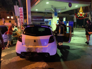 Un veicolo con a bordo due persone è andato a sbattere contro l'aiuola di un benzinaio per motivi ancora da accertare