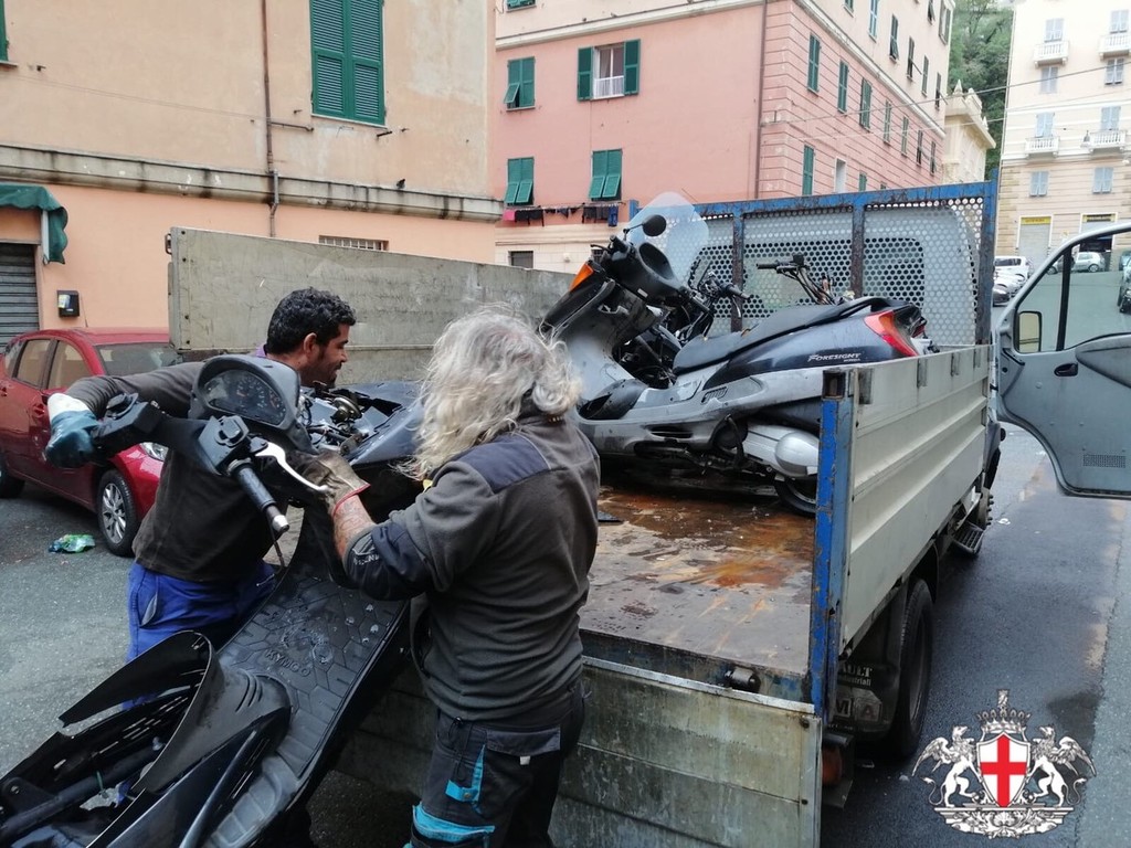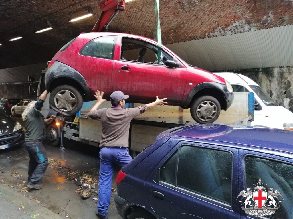 La polizia locale rimuove 75 relitti di veicoli nei 9 municipi: l'operazione più grande a Genova
