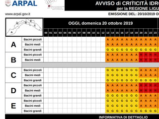 Confermata l'allerta rossa nel centro della Liguria (zone B e D) dalle 20 di stasera: domani 21 ottobre scuole chiuse nelle zone "rosse"