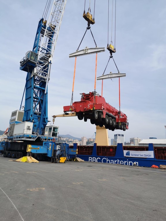 Sbarcate al Terminal San Giorgio le gru per la costruzione del Nuovo Ponte Morandi