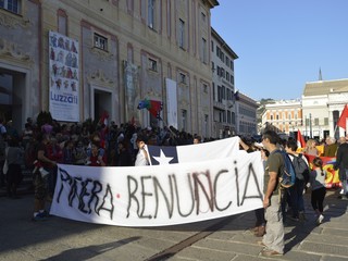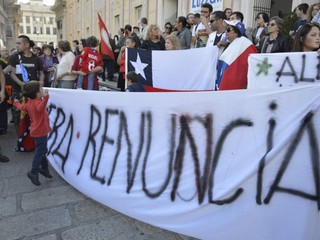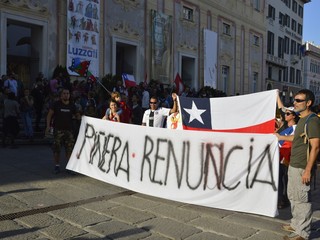 I manifestanti si sono riuniti in piazza De Ferrari per sostenere la richiesta di un passo indietro al presidente cileno Piñera e l'apertura di una nuova fase per il paese