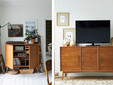 Nelle riviste e nelle case da sogno i televisori sono nascosti, assenti, l'estetica non è infatti delle migliori e inoltre la pianificazione, tra i collegamenti via cavo e le attrezzature da conservare deve essere precisa. Ma nella realtà ogni casa ha almeno uno schermo, e per rendere le cose più particolari puoi scegliere una credenza invece di un mobile tradizionale.