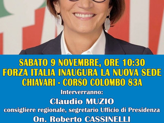 Interverranno alla manifestazione il coordinatore provinciale onorevole Roberto Bagnasco, l’on. Roberto Cassinelli, il consigliere regionale Claudio Muzio, il vicesindaco della Città Metropolitana Carlo Bagnasco, il consigliere metropolitano con delega ai lavori pubblici Guido Guelfo, la coordinatrice cittadina Silvia Garibaldi e la presidente del club “Forza Silvio”, Mariagrazia Oliva. Parteciperanno gli eletti, gli amministratori locali, gli iscritti e militanti azzurri del Tigullio e del Golfo Paradiso. Sarà presente anche una delegazione genovese del partito, con il capogruppo in Consiglio Comunale Mario Mascia, il vicepresidente del Consiglio Guido Grillo e il presidente regionale dei Seniores Giuseppe Costa. “Quello di sabato sarà un momento di festa per Forza Italia”, dichiarano Bagnasco, Cassinelli e Muzio. “La nuova sede, molto più ampia rispetto alla precedente collocata in via Filippini – proseguono – potrà diventare un importante punto di aggregazione per tutti i nostri eletti ed iscritti, non soltanto per la città di Chiavari, ma più in generale per l’entroterra e per il Tigullio orientale. La sede potrà rispondere al meglio alle esigenze organizzative del nostro gruppo, che in questi anni ha continuato ad allargarsi, raccogliendo attorno a sé un numero crescente di amministratori locali e di simpatizzanti. Con questi nuovi spazi potremo più agevolmente incontrare i cittadini e raccogliere le istanze provenienti dal territorio per poi trasformarle in concrete iniziative nei Comuni, in Città Metropolitana, in Regione, in Parlamento. Potremo altresì promuovere convegni e momenti di confronto e di dibattito sui temi della politica locale e nazionale”. “L’apertura della nuova sede – sottolineano ancora i tre esponenti di Forza Italia - è la migliore risposta a coloro che, in altre parti della Liguria, le sedi le hanno chiuse o messe a disposizione di altri partiti. Con questa inaugurazione Forza Italia sul nostro territorio non lascia, ma raddoppia. Moltiplica gli sforzi e l’impegno, con l’entusiasmo e la passione di sempre. Ringraziamo l’on. Gelmini per la sua presenza e la signora Podestà, storica militante di Forza Italia, per aver messo a disposizione questo spazio. Attendiamo i cittadini sabato alle 10.30 in Corso Colombo 83A”, concludono Bagnasco, Cassinelli e Muzio.