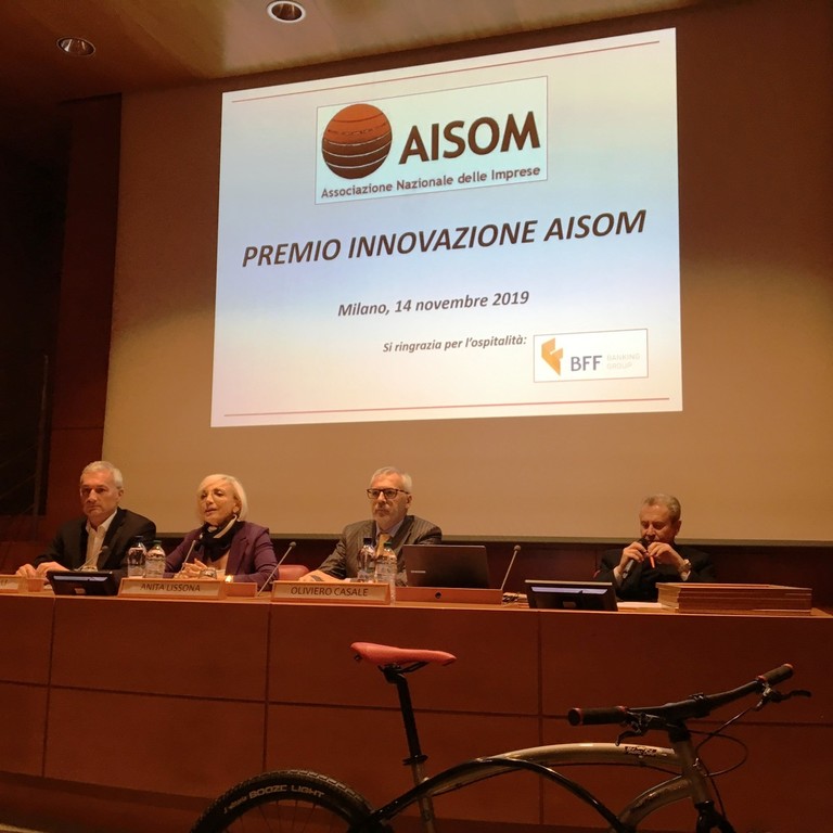 Giovedì 14 novembre 2019 si è tenuta a MILANO alle ore 17,00, presso l’Auditorium di BFF Banking Group (Via Domenichino, 5) la 1^ edizione del PREMIO INNOVAZIONE AISOM promosso ed organizzato da AISOM - Associazione Nazionale delle Imprese (www.aisom.it) per riconoscere l’impegno nell’innovazione delle aziende proprie associate.