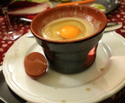 La tradizione prevede alla fine che nella bagna avanzata venga cotto lentamente un uovo di gallina.