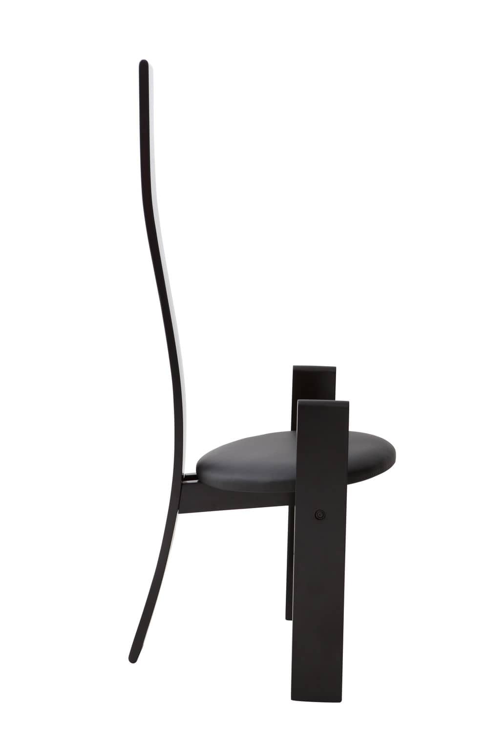 Appartenente alla famiglia degli imbottiti è distinguibile in un treppiedi, con i braccioli dritti e lo schienale in legno incurvato. Quando la disegnò Vico dichiarò di essersi ispirato al lavoro di Charles Rennie Mackintosh, probabilmente alla Hill House, distinta da un altissimo schienale nero.