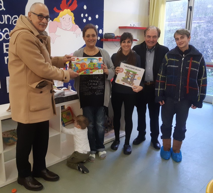 Nella mattinata di mercoledì 4 dicembre, una delegazione dell’associazione, guidata dal presidente Carlo Gasparini e dal cerimoniere Fulvio Bondielli, si è recata nelle aule del complesso scolastico di via Martiri della libertà che dal 2005 (anno di avvio dell’iniziativa da parte dell’onorevole Emiliana Santoli) ospitano la struttura (attualmente gestita dalla cooperativa “Gulliver” in convenzione con il Comune, proprietario degli edifici) ed hanno consegnato un grande sacco colmo di giocattoli ai bimbi che frequentano il nido.