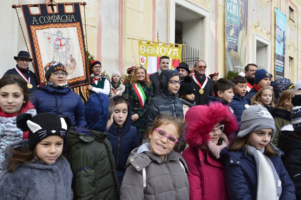 Presenti l’assessore ai Grandi Eventi Paola Bordilli con il Gonfalone del Comune di Genova, i rappresentanti del Municipio Centro Est, l’associazione “A Compagna”, la Pro loco Centro storico genovese e i bambini di una classe dell’Istituto Conturbenio D’Albertis.