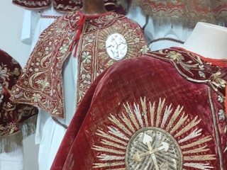 Una sezione, poi, è dedicata agli stupefacenti tabarrini, alcuni dei quali risalgono al XVIII secolo e appartenevano alle confraternite di San Giacomo delle Fucine. “Tra questi - prosegue Frulio - è stato restaurato il prezioso tabarrino della Confraternita di Sant’Ambrogio di Voltri da Elisa Levrero, che ha anche curato la ricerca storica di ogni singolo corredo liturgico. Accanto gli argenti utilizzati nelle processioni, i canti, che con il loro fruscìo metallico, sono collocati alle estremità dei crocifissi processionali, i calici e le mazze processionali concludono il percorso approfondito da Letizia Ciarlo”.