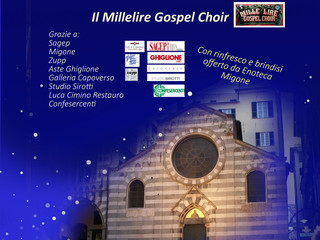 Sabato 21 dicembre, a partire dalle ore 19, il Millelire Gospel Choir si esibirà in concerto sul sagrato di piazza san Matteo, per una performance di inni spiritual e gospel della tradizione americana. Il coro, composto di circa venti persone, sarà diretto dal maestro Andrea Porta, cantante professionista di caratura internazionale.