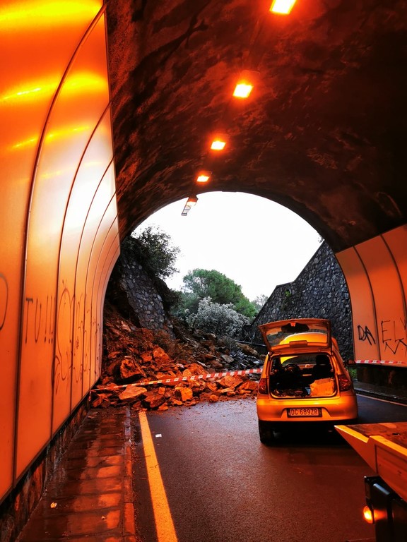 La frana si è verificata prima dell’alba lungo la via Aurelia all’altezza delle Grazie