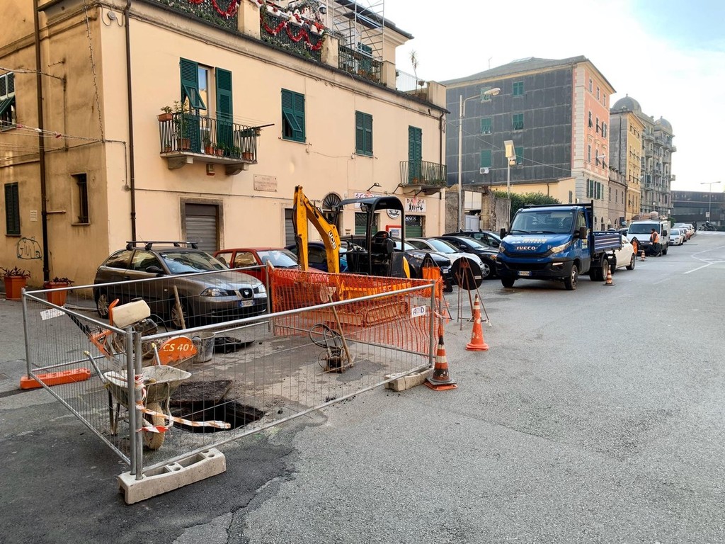 Sestri, cantieri in piazza Aprosio per la posa dei nuovi tubi del gas [FOTO]