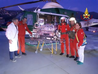 Trasferimento in elicottero di tre neonati da Imperia all'ospedale Gaslini di Genova
