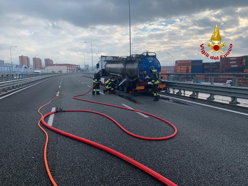 Questa mattina i Vigili del fuoco sono intervenuti sullo svincolo in uscita dal casello autostradale di Genova Aeroporto