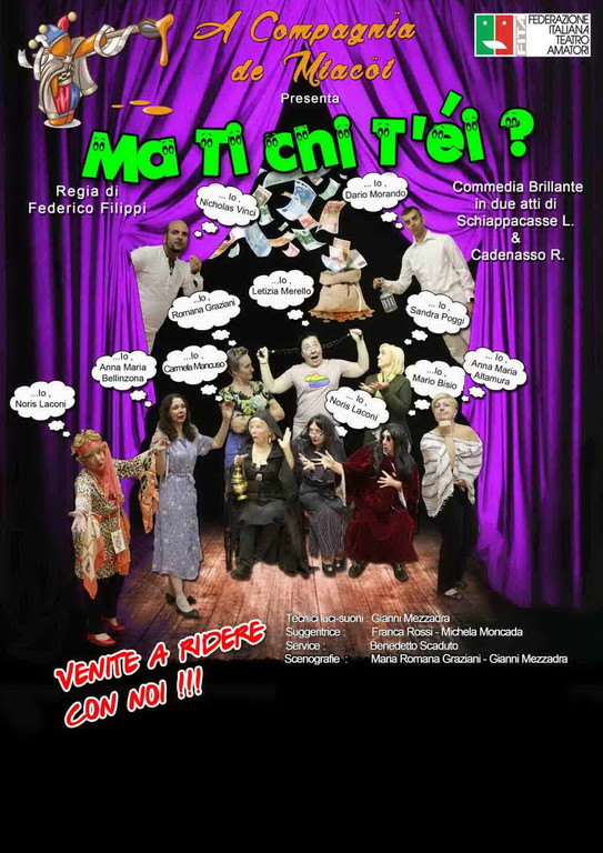 Il teatro in dialetto genovese torna al teatro comunale di Cicagna il 2 febbraio alle 16 con una compagnia teatrale di recente costituzione che la scorsa stagione aveva ricevuto molti applausi e consensi con la commedia brillante “A portea do condominio”: ‘A compagnia de miacöi’, formatasi nel settembre 2016, porta in scena una divertente commedia “Ma ti, chi t'ei?” di Schiappacasse & Cadenasso con la regia di Federico Filippi.