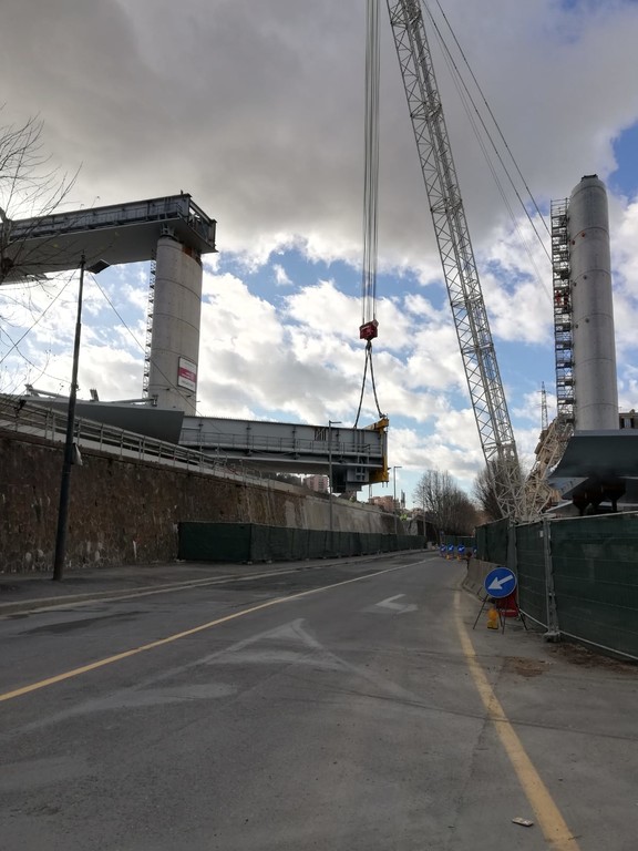 E’ stata issata oggi l’ottava campata del Nuovo Viadotto Polcevera, la terza nel lato levante del cantiere, tra le pile 13 e 14.